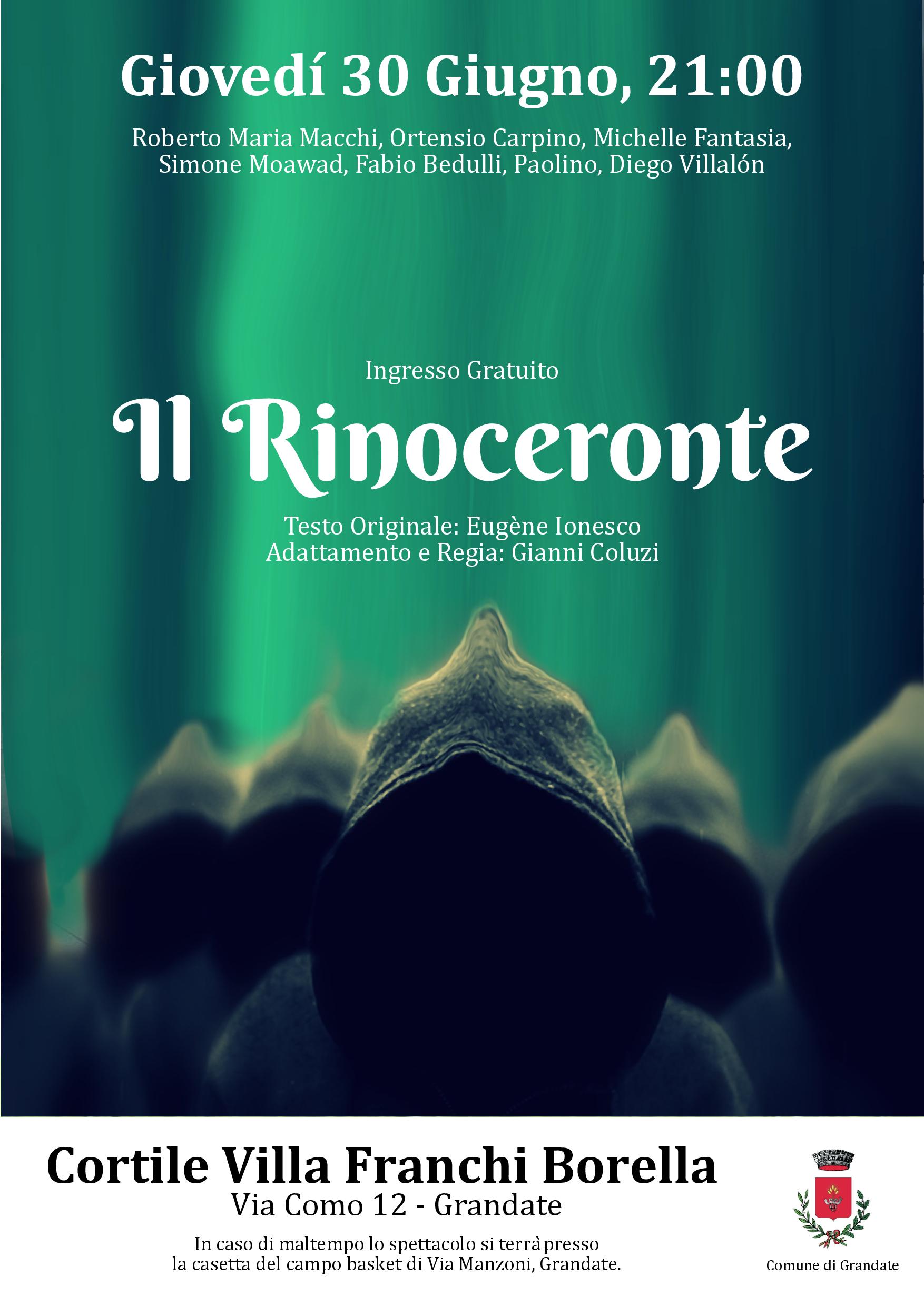 Teatro a Grandate: "Il Rinoceronte", Giovedì 30/06/2022 alle 21:00 al cortile della Villa Franchi Borella (Municipio).