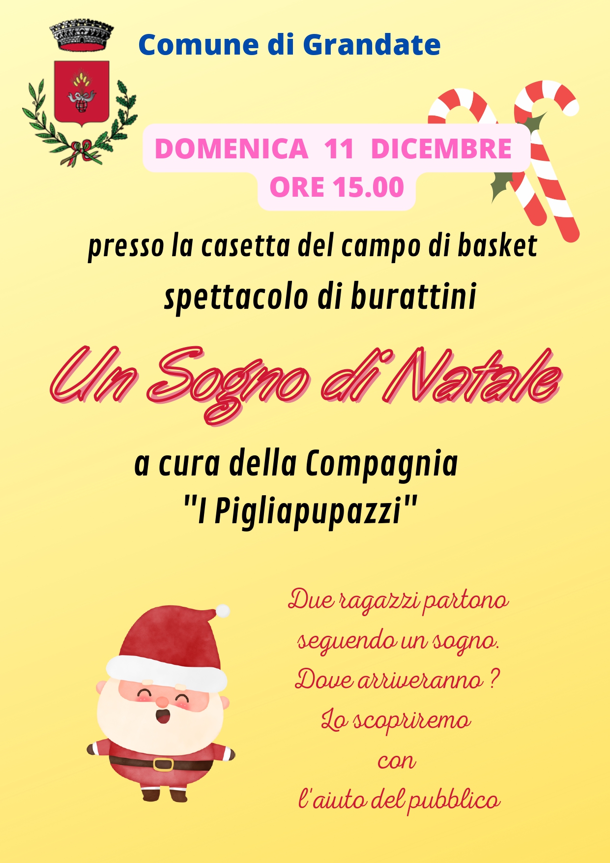 "Un Sogno di Natale", spettacolo di burattini a Grandate, domenica 11 dicembre ore 15:00 presso la casetta del campo di basket di Grandate.