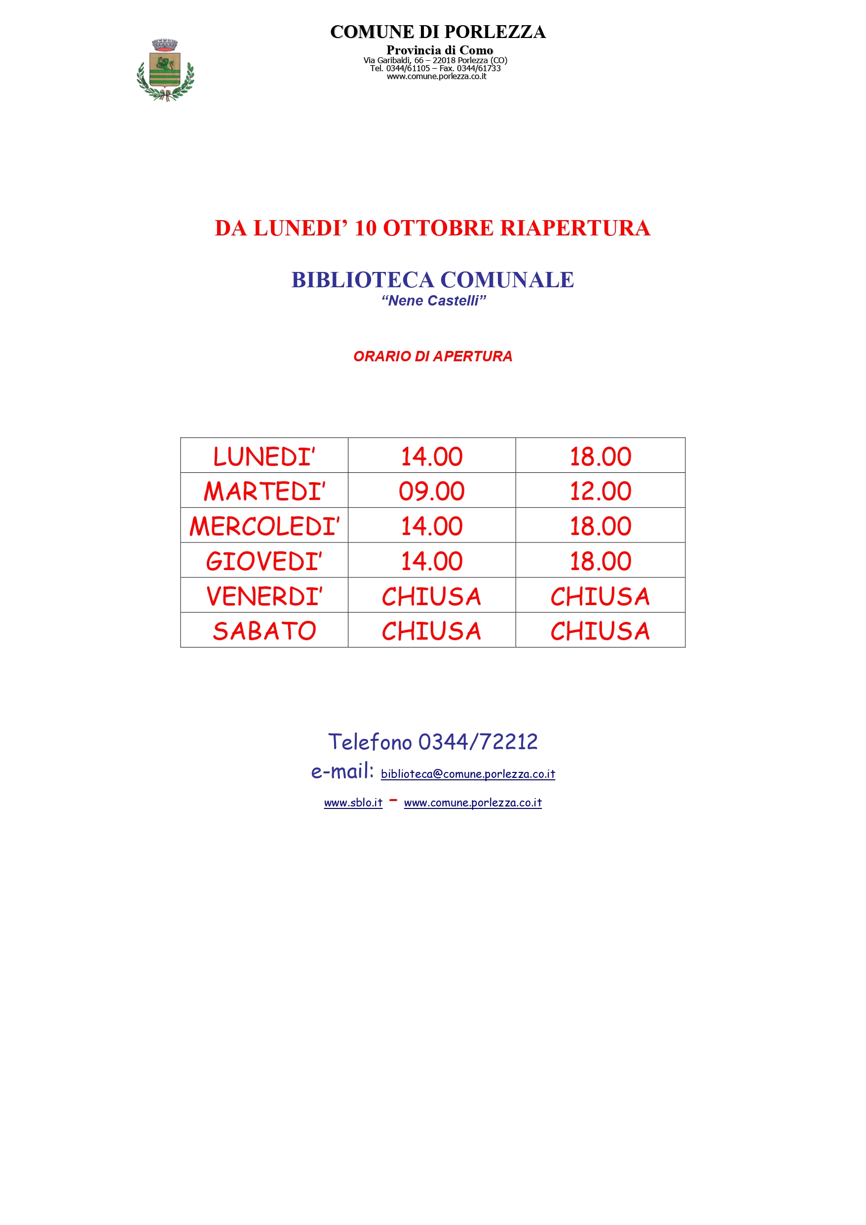 Oggi la biblioteca è chiusa