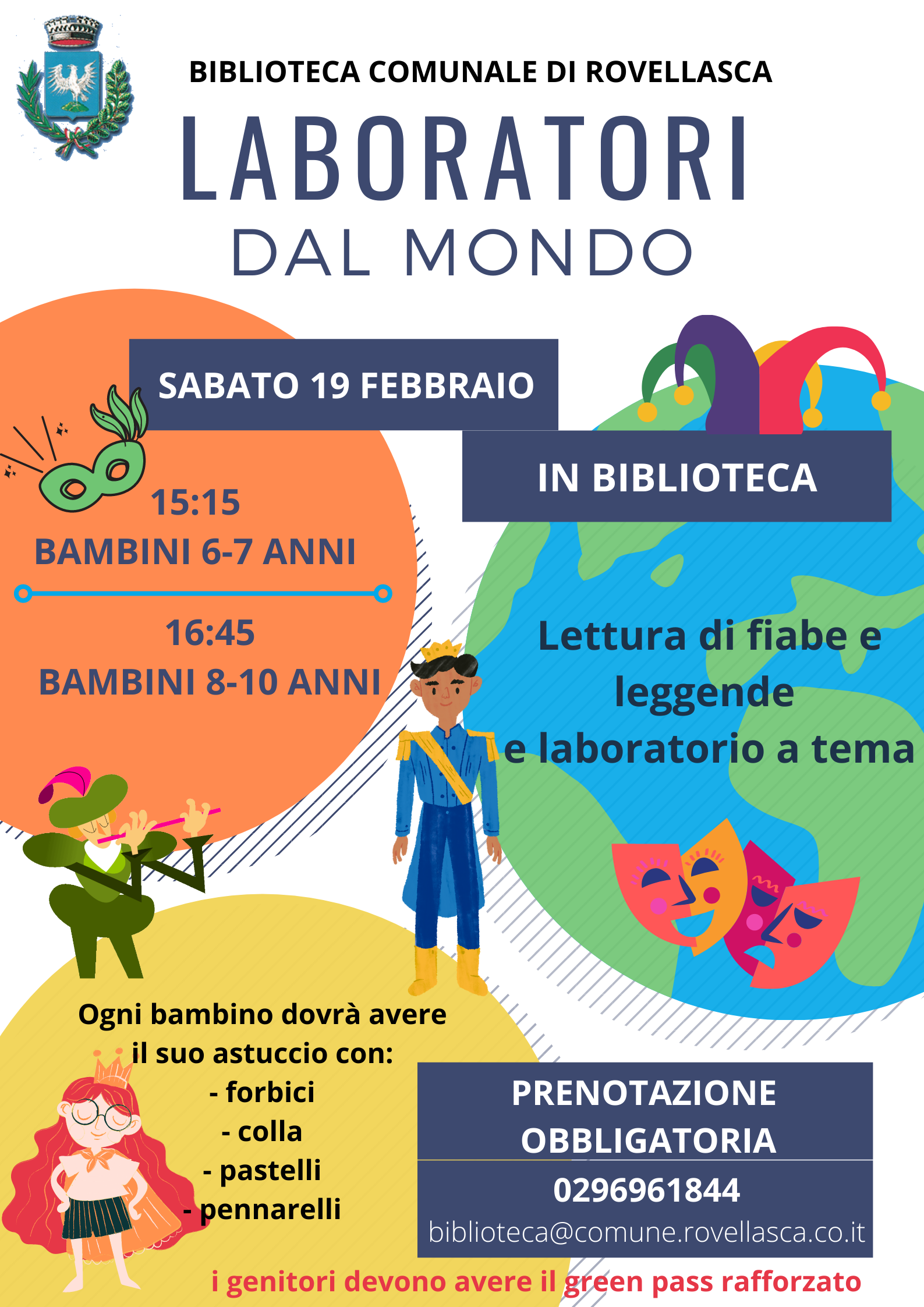 PRENOTAZIONE OBBLIGATORIA: biblioteca@comune.rovellasca.co.it / 0296961844