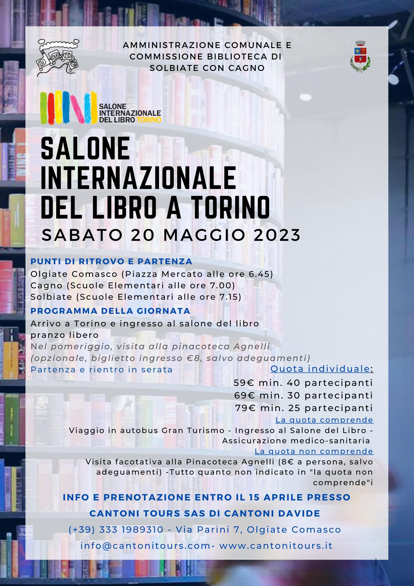 Sabato 20 maggio 2023 proponiamo la visita al Salone del libro di Torino.