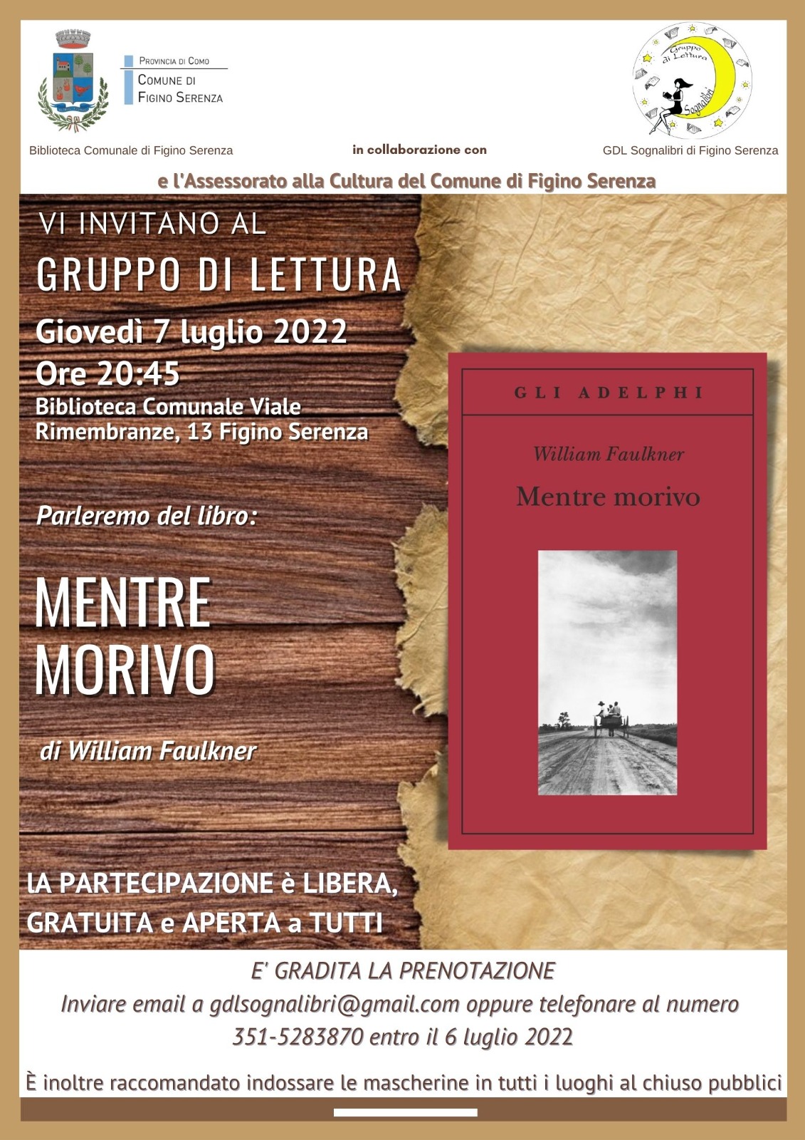 Il gruppo si riunirà giovedì 7 luglio 2022 alle ore 20.45 presso la biblioteca in viale Rimembranze, 13, Figino Serenza (CO).