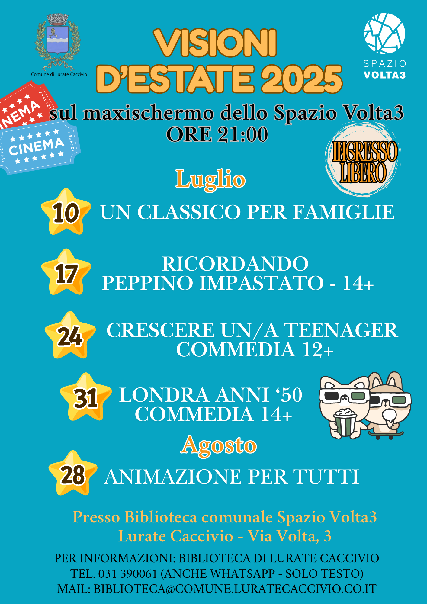 Per info: Biblioteca di Lurate Caccivio, tel. e whatsapp 031 390061, mail: biblioteca@comune.luratecaccivio.co.it