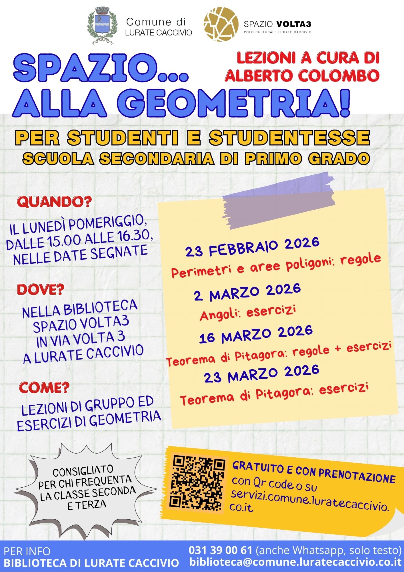 Presso la Biblioteca comunale Spazio Volta3 - Lurate Caccivio, Via Volta 3.